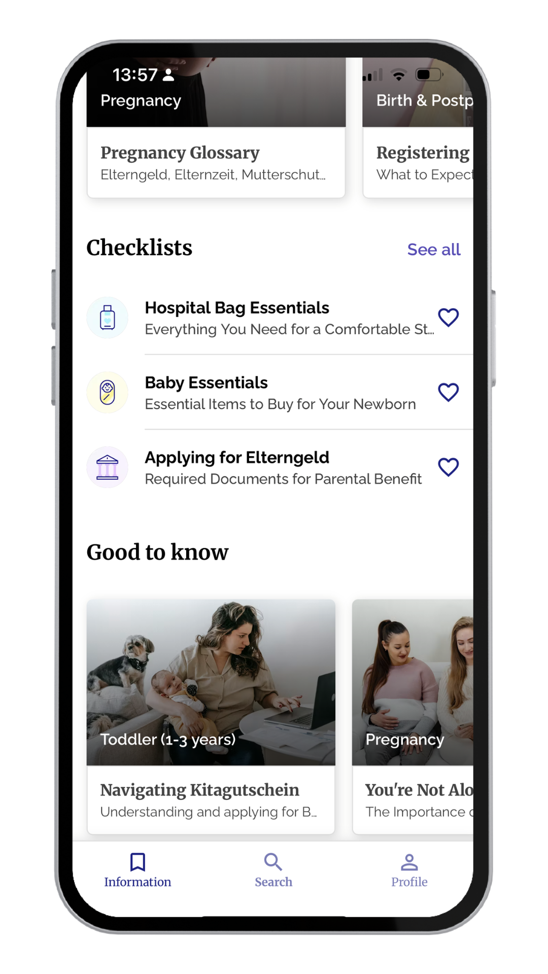 Access helpful checklists and insightful articles tailored to your journey through pregnancy and parenthood in Berlin, providing guidance every step of the way.